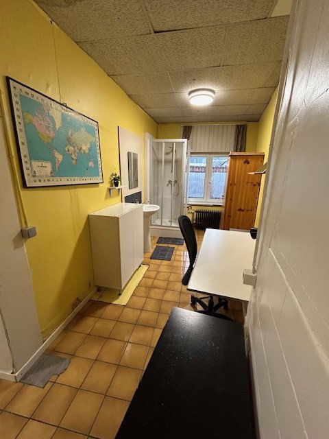 De kamer heeft een oppervlakte van 15 m² en beschikt over een privé douche. Het toilet en de keuken worden gedeeld met vier bewoners.