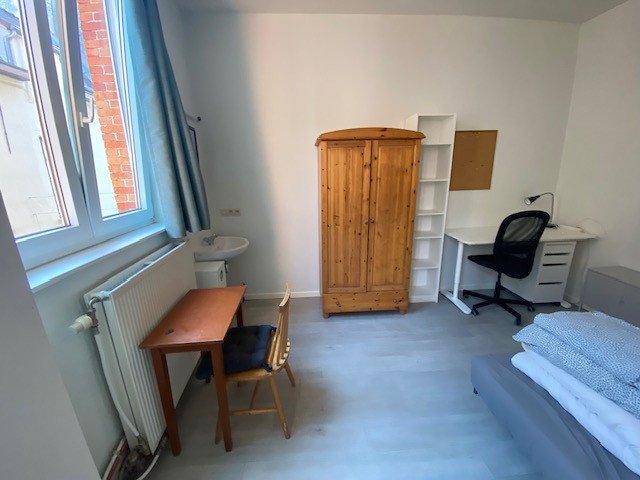De kamer heeft een oppervlakte van 17 m². Het toilet en de douche worden gedeeld met één andere kamer en de keuken is gedeeld.